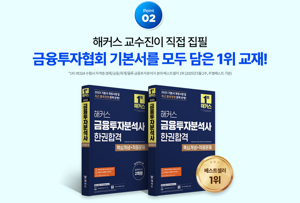 *1À§ ÀúÀÚ Á÷°­ : YES24 ¼öÇè¼­ ÀÚ°ÝÁõ °æÁ¦/±ÝÀ¶/ȸ°è/¹°·ù ±ÝÀ¶ÅõÀںм®»ç ºÐ¾ß º£½ºÆ®¼¿·¯ 1À§ (2025³â 5¿ù 2ÁÖ, ÁÖº°º£½ºÆ® ±âÁØ)