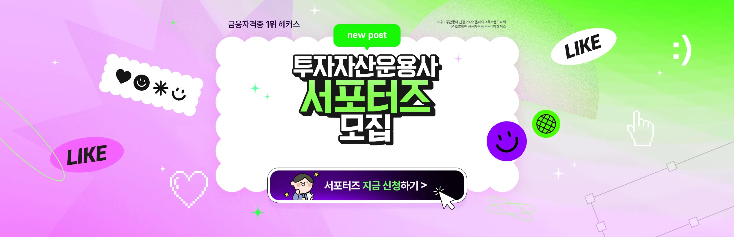 | ¼Æ÷ÅÍÁî ¸ðÁý | ¡Ø ÇØÄ¿½º ÅõÀÚÀÚ»ê¿î¿ë»ç ÀΰÀ» µè°í °øºÎÇÑ ³»¿ëÀ» ¾Ë¸®´Â Ȱµ¿ÀÔ´Ï´Ù. ±¸±ÛÆûÀ» ÅëÇØ ½Åû °¡´ÉÇÕ´Ï´Ù. ¡Ø ¼¼ºÎ ÀÏÁ¤ ¸ðÁý ±â°£ : ~ 7¿ù 22ÀÏ(È)±îÁö ¼Æ÷ÅÍÁî ÇÕ°Ý ¹ßÇ¥ÀÏ : 7¿ù 24ÀÏ(¸ñ)~7¿ù 25ÀÏ(±Ý) ¼Æ÷ÅÍÁî ÇÕ°Ý ÈÄ È°µ¿ ±â°£ : 7¿ù 28(¿ù)~8¿ù 29(±Ý) ¡Ø ÁøÇà ¹æ¹ý Ȱµ¿ ±â°£ µ¿¾È ¸ÅÁÖ 1°³¾¿ ºí·Î±× Æ÷½ºÆÃÀ» ÀÛ¼ºÇؾßÇÕ´Ï´Ù. ÇÕ°Ý ÈÄ ¹®ÀÚ·Î 1Â÷ ¾È³»µÇ¸ç, ¹®ÀÚ ³»¿¡ ÀÖ´Â ¿ÀÇ īÅ广¿¡ ÀÔÀåÇØ¾ß ¼Æ÷ÅÍÁî Ȱµ¿ÀÌ °¡´ÉÇÕ´Ï´Ù. ¡Ø ÇýÅà ¨Í ÅõÀÚÀÚ»ê¿î¿ë»ç °ÀÇ - ±¸±Û Æû¿¡¼ ½ÅûÇÏ´Â ¼Æ÷ÅÍÁî¿¡ ´ëÇÑ °Àǰ¡ Áö±ÞµË´Ï´Ù. - °ÀǸ¸ Á¦°øµÇ¸ç, ±³Àç´Â º°µµ·Î ±¸¸ÅÇØ¾ßÇÕ´Ï´Ù. ¨Î ÀüÀÚ ¸íÇÔ, ¼ö·áÁõ - ¼ö·áÁõÀº ÃÖÁ¾ ¼ö·á½Ã ¹ß±ÞµË´Ï´Ù. ¨Ï ±âÃ⺯ÇüÇÏÇÁ¸ðÀǰí»ç 3ȸºÐ (PDF) - ¼ö°ÇÏ´Â °ÀÇ ³» ¸¶ÀÌŬ·¡½º¿¡¼ È®ÀÎ °¡´ÉÇÕ´Ï´Ù. ¨Ð ¼ö°±Ç, ÇÒÀÎ ÄíÆù - ¼ö·á½Ã Á¦°øµË´Ï´Ù. - ¼ö°±Ç : ÇØÄ¿½º±ÝÀ¶¿¡¼ ÁøÇàÇÏ´Â Àü °ÀÇ 3ÀÏ ¼ö°±Ç - ÇÒÀÎ ÄíÆù : ÅõÀÚÀÚ»ê¿î¿ë»ç ¼ö°·á ȯ±Þ¹Ý 10¸¸¿ø ÇÒÀÎÄíÆù (¹ß±Þ ÈÄ 3Àϰ£ »ç¿ë °¡´É) ¨Ñ ¿ì¼ö Ȱµ¿ÀÚ ÇýÅà - Ȱµ¿ Á¾·á ÈÄ ¿ì¼ö Ȱµ¿ÀÚ ¼±Á¤ÇÏ¿© ġŲ ±âÇÁƼÄÜ Á¦°ø ¿¹Á¤ÀÔ´Ï´Ù. - ¿ì¼ö Ȱµ¿ ¼±Á¤ Á¶°ÇÀº Æ÷½ºÆÃ ¹Ì¼ÇÀ» ¸ðµÎ ÁøÇàÇØ¾ßÇϸç, ²Ä²ÄÇÏ°Ô ÀÛ¼ºÇؾßÇÕ´Ï´Ù. |