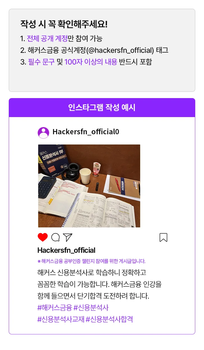 ÇØÄ¿½º±ÝÀ¶ °øºÎÀÎÁõ 縰Áö´Â ÇØÄ¿½º±ÝÀ¶ ±³Àç·Î °øºÎÇÏ´Â »çÁøÀ» °Ô½ÃÇϸé ÇØÄ¿½º±ÝÀ¶ Àΰ 3¸¸¿ø ÇÒÀαÇÀ» Á¦°øÇÏ´Â À̺¥Æ®ÀÔ´Ï´Ù. <À̺¥Æ® Âü¿© À¯ÀÇ »çÇ×> 1) ÇÑ ID´ç 1ȸ¸¸ Âü¿© °¡´ÉÇÕ´Ï´Ù. 2) ÇØÄ¿½º±ÝÀ¶¿¡¼ Ãâ°£ÇÑ ±³Àç·Î °øºÎÇÏ´Â À̹ÌÁö¸¸ ÀÎÁ¤µË´Ï´Ù. - ÀÎÁõ ºÒ°¡ µµ¼ ¹× ÀÚ·á : ÁÖ°üó¿¡¼ Ãâ°£ÇÑ ±âº»¼ ¹× ±âÃâ¹®Á¦Áý, ºñ¸Åǰ, ¹«·á ÄÜÅÙÃ÷ [¢º ÇØÄ¿½º±ÝÀ¶ Ãâ°£ ±³Àç ¸®½ºÆ® È®ÀÎÇϱ⠢¸] <°Ô½Ã±Û ÀÛ¼º ½Ã À¯ÀÇ »çÇ×> - 1) °Ô½Ã±Û ÀÛ¼º ½Ã ÀÛ¼º °¡À̵带 ¹Ýµå½Ã È®ÀÎÇØÁÖ¼¼¿ä. 2) ¹Ýµå½Ã ÁöÁ¤µÈ Ä¿¹Â´ÏƼ¿¡ ÀÛ¼ºÇØ¾ß ÇÕ´Ï´Ù. - ÀνºÅ¸±×·¥ / ³×À̹ö ºí·Î±× / ³×À̹ö µ¶±Ý»ç Ä«Æä 3) °Ô½Ã±ÛÀº [Àüü°ø°³]·Î ÀÛ¼ºµÇ¾î¾ß ÇÕ´Ï´Ù. (ÀνºÅ¸±×·¥ÀÇ °æ¿ì Àüü°ø°³ °èÁ¤) 4) °Ô½Ã±Û ÀÛ¼º °¡À̵忡 ¾î±ß³ª°Å³ª °Ô½Ã±Û ³»¿ëÀÌ ÀûÀýÇÏÁö ¾Ê´Ù°í ÆÇ´ÜµÉ °æ¿ì (°ü·Ã ¾ø´Â ³»¿ë, ÀÇ¹Ì ¾ø´Â ÃʼºÀÇ °úµµÇÑ »ç¿ë µî)ÄíÆù Áö±Þ ´ë»ó¿¡¼ Á¦¿ÜµÉ ¼ö ÀÖ½À´Ï´Ù. <ÄíÆù Áö±Þ ¾È³»> - 1) ÄíÆùÀº Áö±ÞÀϷκÎÅÍ 3Àϰ£ »ç¿ë °¡´ÉÇϸç Àç¹ß±ÞÀº ºÒ°¡ÇÕ´Ï´Ù. 2) ÄíÆùÀº À̺¥Æ® °ÀÇ¿¡¸¸ Àû¿ë °¡´ÉÇϸç ÀϺΠ°ÀÇ´Â Àû¿ëÀÌ ºÒ°¡ÇÒ ¼ö ÀÖ½À´Ï´Ù. - AFPK/CFP/ARPS/°è¼Ó±³À°ÇÐÁ¡ °ÀÇ Àû¿ë ºÒ°¡ |