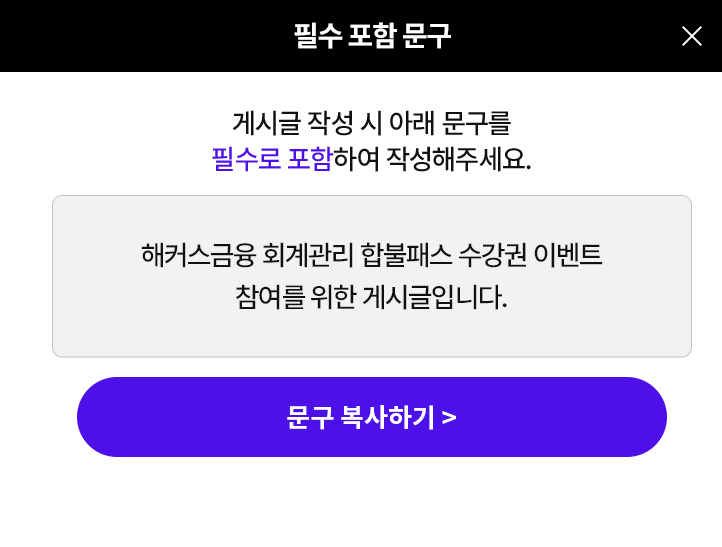 | ÇÕ°ÝÈıâ À̺¥Æ® ¾È³» | 1) º» ÆäÀÌÁö ³»ÀÇ ÇÕ°ÝÈıâ À̺¥Æ® Âü¿©½Ã, °Ë¼ö ÈÄ¿¡ ȸ°è°ü¸®1±Þ/Àç°æ°ü¸®»ç 3ÀÏ ¼ö°±ÇÀÌ Áö±ÞµË´Ï´Ù. (ID´ç ÃÖÃÊ 1ȸ) 2) ÇÕ°ÝÈıâ À̺¥Æ® ³»¿¡¼ À̹ÌÁö, URL, ű׸¦ º¹»çÇÑ ÈÄ ÁöÁ¤µÈ Ä¿¹Â´ÏƼ¿¡ °Ô½Ã±ÛÀ» ¿Ã·ÁÁֽŠÈÄ, ÇØ´ç URLÀ» ÀÎÁõÇÏ¸é ¼ö°±ÇÀÌ ¹ß±ÞµË´Ï´Ù. 3) ¼ö°±ÇÀº ¹ß±ÞÀÏ Æ÷ÇÔ 3ÀÏ ³» »ç¿ë °¡´ÉÇϸç, ¼ö°±Ç »ç¿ë±â°£ ¸¸·á¿¡ ÀÇÇÑ Àç¹ß±ÞÀº ºÒ°¡ÇÕ´Ï´Ù. 4) ÇÕ°ÝÈıâ À̺¥Æ®´Â ¿¹°í¾øÀÌ º¯°æ/Á¾·áµÉ ¼ö ÀÖÀ¸¸ç, ¼ö°±Ç ¶ÇÇÑ º¯µ¿µÉ ¼ö ÀÖ´Â Á¡ ¾È³»µå¸³´Ï´Ù. 5) °Ë¼ö¸¦ ÅëÇØ ¼ö°±Ç Áö±ÞµÇ¸ç, ¼ö°±ÇÀº ÇÕ°ÝÈıâ ÀÛ¼º ´ÙÀ½³¯ ±âÁØ ÆòÀÏ ¿ÀÀü¿¡ Áö±ÞµË´Ï´Ù. |